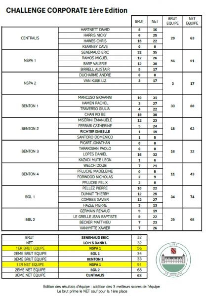 Un grand bravo à NSPA qui remporte le BRUT et le NET d'équipe.